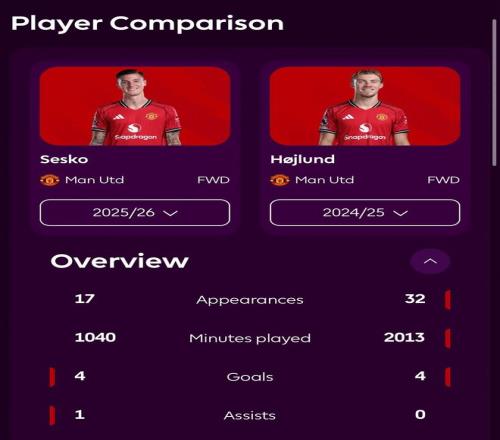 但阿莫林对谢什科的用法没有展示出成效,斯洛文尼亚前锋只打入了2球。卡里克更为幸运,谢什科在他麾下6场替补出场打入了3球。或许这要感谢两人之间的临时主帅达伦·弗莱彻,虽然他带队两场不胜,但他激活了谢什科的信心,后者两场都首发,打入了3球,为在卡里克麾下成为替补奇兵打下基础。