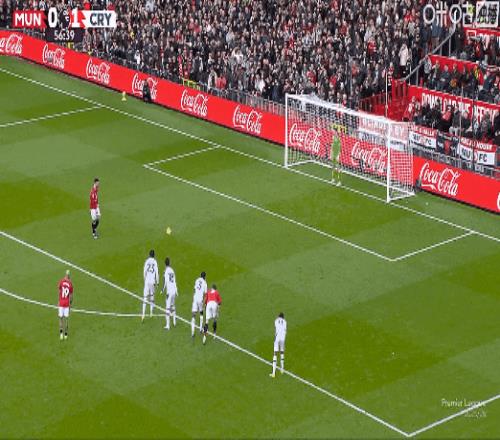 比赛第52分钟,拉克鲁瓦吃到“红点套餐”,B费点射扳平比分,曼联1比1水晶宫!