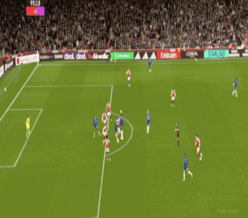 下半场开始只有5分钟,萨卡禁区外的远射被挡了一下,桑切斯双龙出海将球挡出,萨利巴直接吊射,桑切斯将球没收。