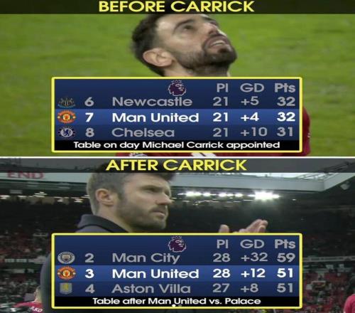 但同样值得注意的是,维拉、布伦特福德和埃弗顿今年都在圣詹姆斯带走了3分,卡里克自然也有信心可以带队实现。在1月14日之前,纽卡斯尔的排名都还高于曼联,但卡里克上任后7战6胜1平后,曼联反超了15分!