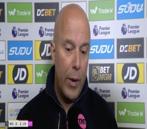 英超第29轮,利物浦客场1-2不敌狼队,赛后,红军主帅斯洛特接受了TNT体育的采访。