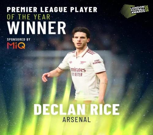 据伦敦足球奖官方消息,阿森纳中场赖斯当选英超年度最佳球员,阿尔特塔当选英超年度最佳主帅,颁奖典礼将于英国当地时间今晚在伦敦进行。