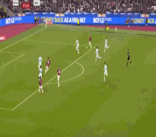 第34分钟,卡约德绊倒特拉奥雷送点,鲍恩主罚命中,西汉姆联2-1