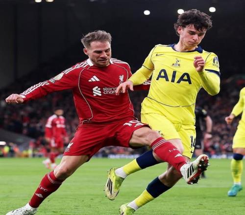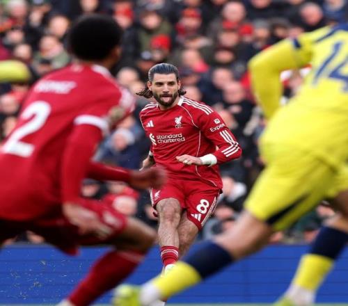 面对最近3次交手,全部败在自己脚下的热刺,利物浦在主场沿用了4231的阵型,首发门将阿利森、罗伯逊、范戴克、乔戈麦斯和索博斯洛伊构筑后防,麦卡利斯特和赫拉芬贝赫搭档双后腰,恩古莫哈、维尔茨和弗林蓬坐镇中场,单箭头则是加克波。