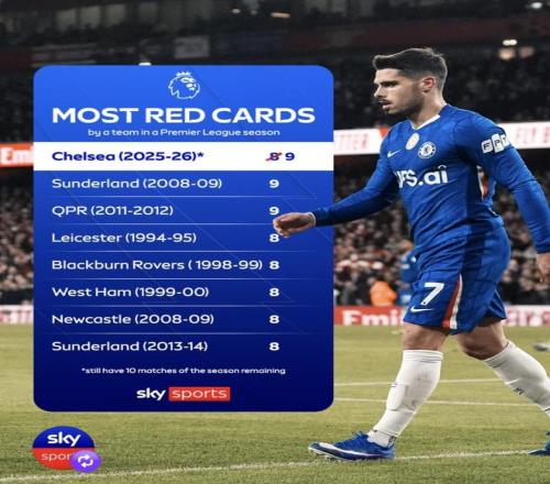 切尔西这赛季红牌多,不像是单一球员的问题,更像是整支队在高压时刻的处理经常出错。到3月初,切尔西28轮英超已经吃到7张红牌,明显高于其他球队;更关键的是,这7张英超红牌来自7个不同球员。算上各项赛事,切尔西本季已经有9次被罚下,而且是9个不同的人。这个分布已经很说明问题:不是某个人总在出事,而是全队在比赛容易失控的阶段,经常有人做出错误选择。