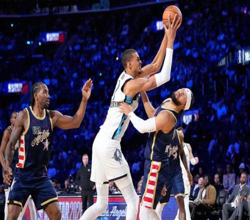 2月16日,NBA全明星赛正赛循环赛中,美国星条队48比45淘汰世界队,伦纳德得到31分3篮板,世界队方面文班亚马砍下19分2篮板。
