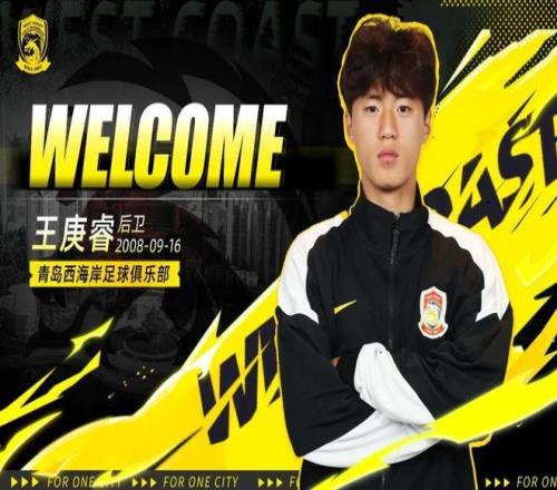 欢迎王庚睿加入青岛西海岸队!希望王庚睿尽快融入球队,在青岛这片足球热土上追逐足球梦想,与球队一同成长,为青岛足球的未来贡献青春力量!