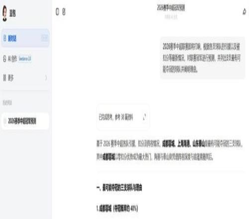 北京时间3月2日,距离2026赛季中超联赛开赛仅剩下最后4天的时间,在9支球队被不同程度扣除联赛积分的情况下,新赛季联赛冠军归属引发热议。在人人都谈AI的时代,小编让5大AI平台对新赛季冠军进行预测,成都蓉城成为最大热门,而被扣5分的上港则被看好4连冠。
