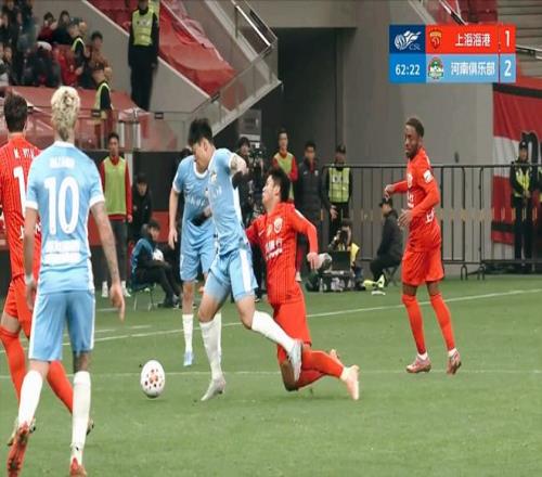 30分钟后,上海海港逐渐在前场形成了攻势,杨希和李帅的头顶脚踢,距离破门差之毫厘。而河南队的反击,令上海海港的禁区风声鹤唳,纳萨里奥的劲射击中立柱弹出。补时的最后一分钟,杨希横传禁区,加布里埃尔推射破门,1:2!半场比赛结束,双方只有一球的差距。