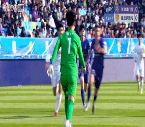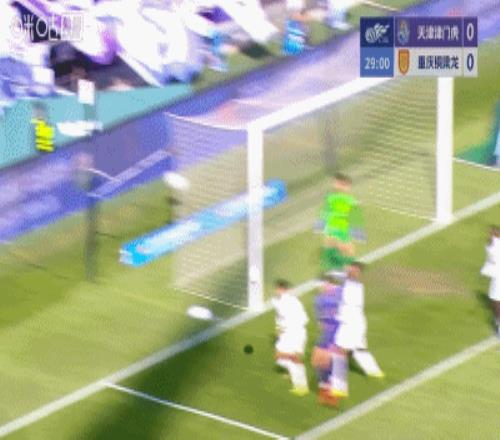第12分钟,津门虎新外援谢蒂内禁区内近距离打门,姚浩洋贡献关键扑救,随后皮球击中横梁弹出。