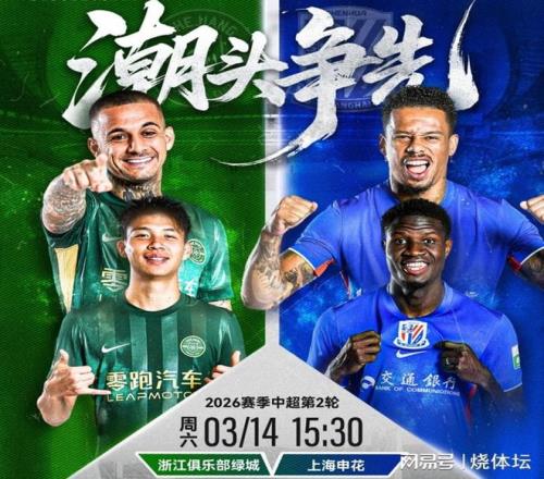 北京时间3月14日15点半,2026赛季中超联赛第2轮,浙江队主场对阵上海申花。目前双方的首发阵容已经出炉,本场浙江...