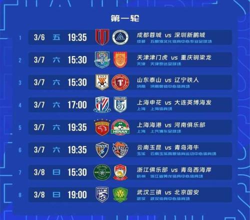根据赛程安排,2026赛季中超联赛首场比赛将在3月6日19时35分打响,由成都蓉城主场迎战深圳新鹏城。作为本赛季未受处罚的球队,两队均将以0分的“优势”开局。