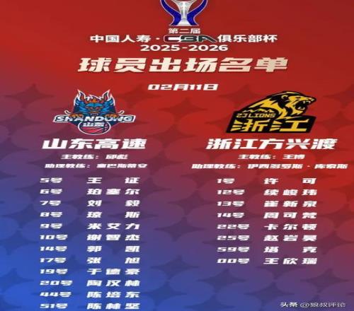 北京时间2月11日,CBA俱乐部杯季军争夺战,山东vs广厦大名单正式出炉,由于广厦面临大面积伤病,只有8人出战,山东新...