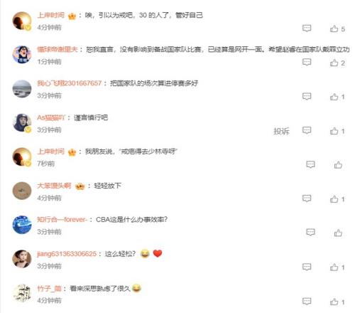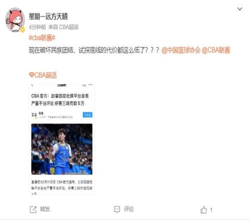 不少的球迷都在评论区表示这个处罚太轻了,轻拿轻放,多国家队的比赛丝毫没有影响,实际上该处罚他不能出战中国男篮的比赛才对。