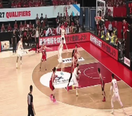 来到下半场,比赛一上来,贺希宁先突破拿分,旋即赵睿突破,被日本球员打倒。