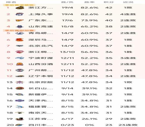 CBA最新积分榜