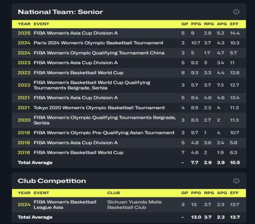 本赛季31岁的老将王思雨代表四川女篮出战12场比赛,场均23.2分钟,拿到9.8分6.2助攻3.3篮板1.5抢断0.4盖帽,命中率47.4%,三分命中率32.2%,她在联赛的表现很一般不过她的身体状态已经比去年更佳,宫鲁鸣也应该是看中她的突破能力。