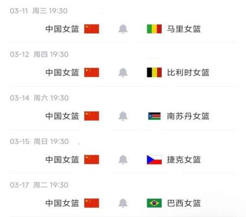 女篮亚洲杯预选赛,中国队的赛程如下: