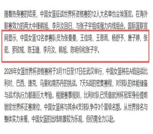 女篮国家队12人名单正式出炉,仅4名老将坐镇,大批新人强势补位,备战势头拉满。