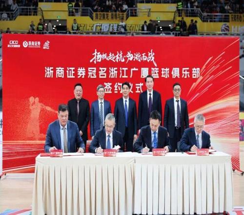3月11日晚,“扬帆起杭·为浙而战”浙商证券冠名浙江广厦男篮签约仪式在广厦男篮主场黄龙体育馆举行。随着仪式现场协议的正式签署,浙江广厦男篮将以“浙商证券队”的全新面貌征战CBA联赛,共同开启“金融+体育”跨界融合的全新篇章。