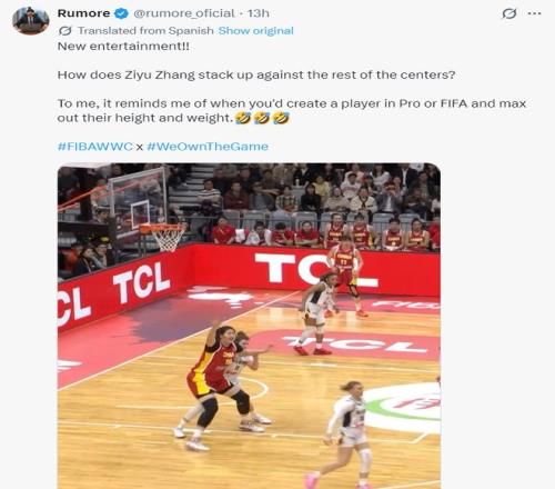 外媒记者:张子宇在中锋位置是什么样的存在?这让我想起了在FIFA游戏中创建角色时,将球员身高、体重设置到最大值的情景。