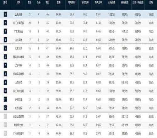 CBA积分榜最新排名出炉!广东16分惨败被打回原形,辽宁杀进前八