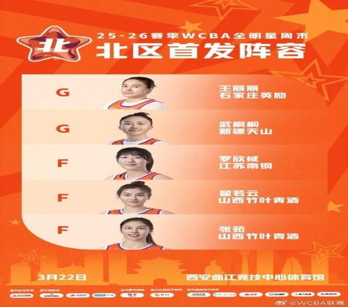 2026年WCBA全明星正赛首发阵容: