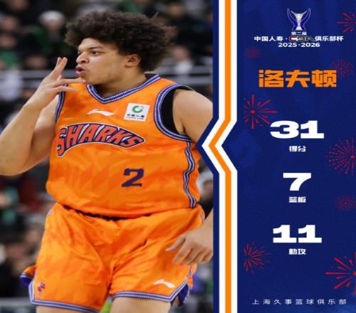 对阵广东的1/4决赛,洛夫顿全场比赛33分钟,19中12,三分5中2,罚球6中5,拿到31分11助攻7篮板1求昂达1盖帽,命中率63.2%,三分命中率40%,打出了约基奇的水准。这三场淘汰赛他场均25.7分7.3篮板5.3助攻,他是当之无愧的杯赛MVP。