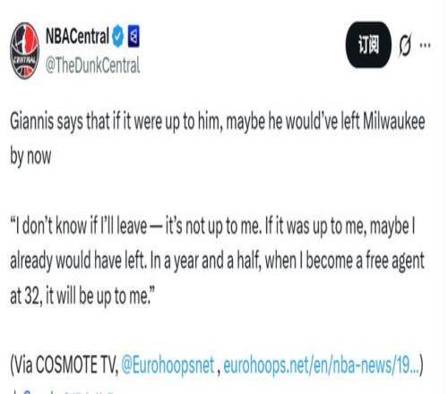 北京时间2月19日,字母哥接受COSMOTE TV独家专访时,再次被问及自己的未来。