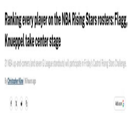 杨瀚森排在第22名!美媒《fansided》在全明星周末即将到来之际,提前公布出入选NBA新秀挑战赛的新星排名,其中克努佩尔与弗拉格两大最佳新秀热门占据前二,火箭队谢泼德则高居第六。