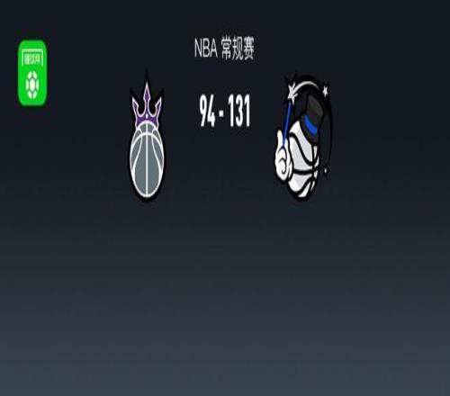 第四节国王德文-卡特拿下4分,魔术杰特-霍华德拿下10分,最终国王94-131不敌魔术