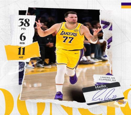 北京时间2月21日,湖人以 125-122击败快船。这场比赛湖人三巨头里夫斯、东契奇、詹姆斯合计拿到80分,东契奇更是狂揽38分11助攻6篮板8个三分球的炸裂数据,他是这场比赛湖人赢球的第一功臣,末节两个三分都非常关键。此役后湖人本赛季关键时刻16胜3负继续联盟第一。