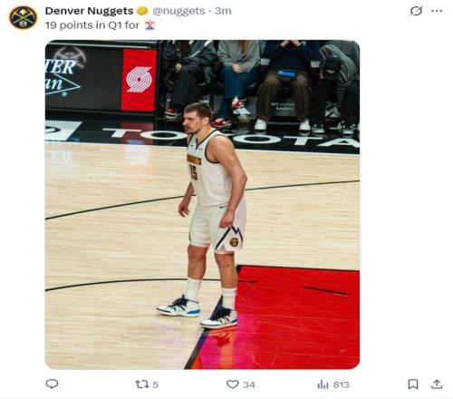 对阵快船的比赛约基奇的进攻欲望非常差,全场比赛22中9+三分6中0+6失误,才拿22分。但这场对阵开拓者他的战意非常浓,首节12分钟里12中7,三分4中3,罚球4中2,拿到19分2篮板1助攻2抢断,约基奇这个状态就是想赢球。