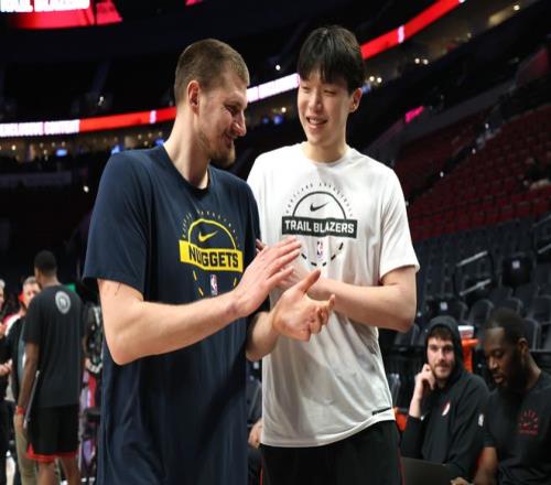 北京时间2月21日,NBA开拓者和掘金的比赛,开拓者惨败给掘金54分,这场比赛,杨瀚森面对自己的偶像约基奇,可惜两人没有正面对位,只是在赛前进行了友好交流。杨瀚森对约基奇说,我不是真的要亲你,约基奇则拍拍杨瀚森的胸表示友好。此前杨瀚森曾在采访时表示自己想亲约基奇一口,但两人今天确实只是抱了抱。
