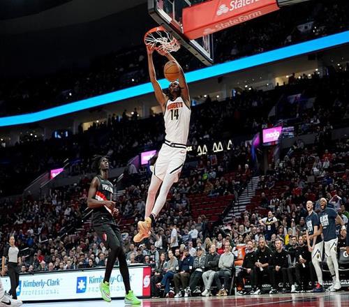 本场比赛中,由于比赛早早失去了悬念,掘金的替补内线新星达龙-霍姆斯二世(Daron Holmes II)也是得到了一些出场时间和表现机会,而他的表现也是颇具亮点的。霍姆斯全场出场6分56秒,投篮7中4,三分线外3中1,得到了9分3篮板1助攻的数据,还有1次失误和1次犯规,正负值也是达到了+15。霍姆斯在有限的出场时间内展现出了全面的得分能力,他的进攻效率相当不错,他在对手内线制造了不小的威胁,他也展现出了一定的外线投射能力。霍姆斯在进攻端简直就是一个万花筒,得分能力非常惊人,他也是抓住了机会直接打爆了开拓者的内线。能够在出场时间如此有限的情况下刷出这样的数据,打出这样的正负值,也确实是一件不太容易的事情。