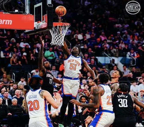 NBA常规赛继续展开,火箭客场挑战尼克斯。本场比赛火箭上来手感低迷,半节只拿到6分,好在之后外线接连命中止血,成功将分差迫近,可首节打完还是落后6分;次节比赛尼克斯上来不断拿分,一度也是将分差拉开到13分,随后火箭慢慢找回一些手感,杜兰特之后找回手感连续拿分帮助球队反超,半场54-53领先尼克斯。