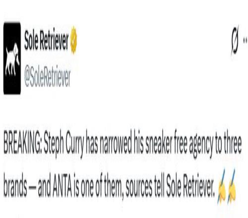 据悉,库里已将球鞋品牌候选缩小到三家,安踏就在其中。