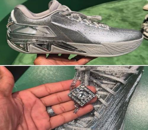 周日下午,全明星期间库里与约内斯库、欧文一同训练的照片和视频流出:他上脚了安踏狂潮5二代,鞋跟位置赫然印有库里品牌的Logo。