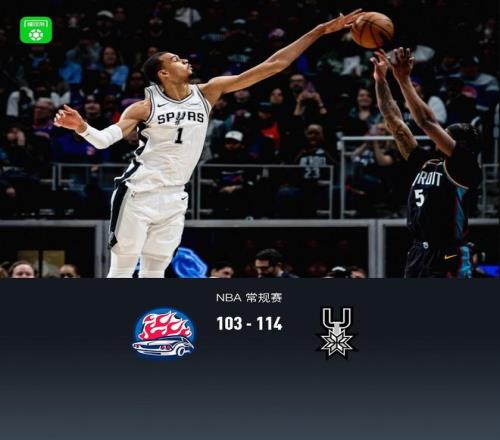 第四节活塞杰伦-杜伦拿下14分,马刺文班亚马拿下11分,最终活塞103-114不敌马刺