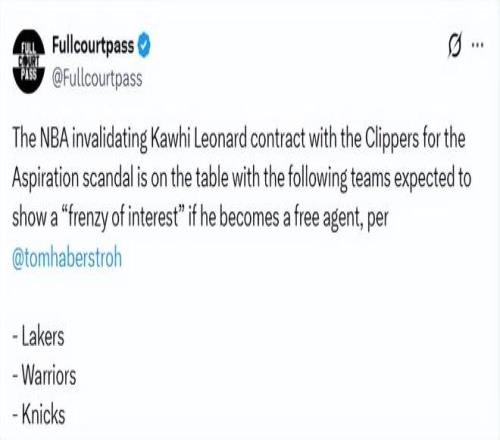 北京时间2月24日,据NBA记者汤姆-哈伯斯特罗报道,因此前涉及的阴阳合同问题,NBA有可能会宣布莱昂纳德与快船的合...