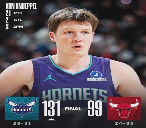 北京时间2月25日,NBA常规赛,黄蜂131-99大胜公牛。黄蜂4号秀克尼佩尔出战22分31秒,投篮12中7,三分6中3,罚球4中4,砍下21分1板2助2断,正负值+24全场第二高。克尼佩尔27次单场20+,在2025届新秀中排第一。
