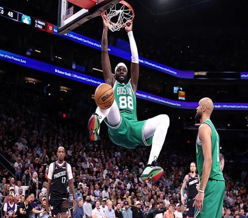 本场比赛中,凯尔特人的先发中锋内米亚斯-克塔(Neemias Queta)的表现依然是非常突出的。克塔全场出场26分49秒,投篮10中5,罚球4中4,得到了14分13篮板3助攻2盖帽的两双数据,其中还包括了6个前场篮板,还有2次犯规,正负值更是达到了全场最高的+29。克塔在本场比赛中算是发挥出了自己在攻防两端的特点,他在对手内线制造了不小的威胁,也是得到了一些分数的,而且他在传球和策应方面的表现也具备一定的亮点。克塔在防守端在后场篮板保护以及护筐方面的表现也是可圈可点的水平,同样起到了很好的效果。克塔可以说是轻轻松松打爆了太阳的先发中锋马克-威廉姆斯(Mark Williams),这样的表现也是值得肯定的。