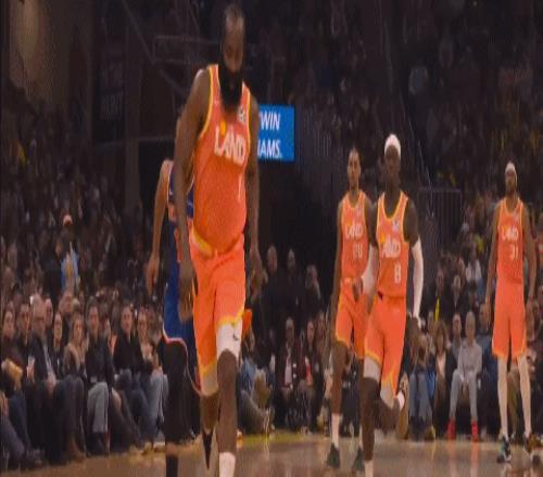 这是骑士7天5战,背靠背的比赛,莫布利和米球王都轮休了,只有刚来的哈登骨折出战背靠背。