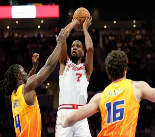 火箭的进攻体系如今高度依赖老杜的投射和中距离跳投,每当球队陷入得分荒时,杜兰特总能站出来用标志性的干拔或三分稳住局面。他的存在让年轻球员申京和阿门谢泼德等人能更轻松地发挥,不用承担过重的得分压力。同时,杜兰特的经验和领导力也在更衣室发挥作用,帮助球队在伤病潮中保持凝聚力。现在的火箭确实在“啃老杜兰特”。球队的成功很大程度上建立在他超乎常人的耐操程度和高效输出上。37岁的杜兰特场均出战时间接近37分钟,这在现代NBA已属罕见,但他依然保持着极高的效率和低失误率,这份身体管理和竞技状态令人叹服。
