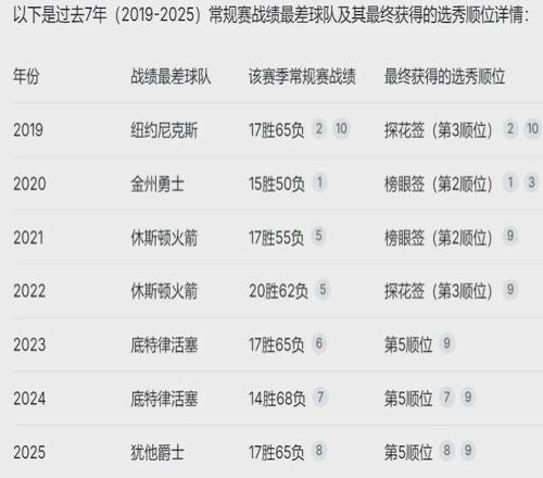 联盟拟定的反摆烂条例当中,比较有用的大概两条:1、禁止同一支球队连续两年获得前四顺位;2、连续两年战绩倒数前三的球队,第二年乐透抽签不能再拿高顺位签。有些球队连续多年摆烂,以前能连续抽到高顺位签,以后不行了。