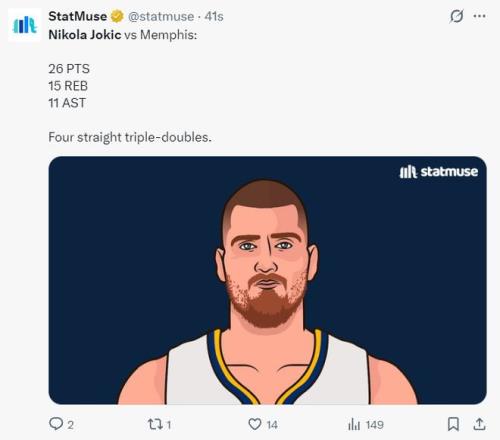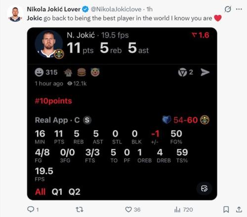 北京时间2月12日,掘金122-166险胜灰熊。这场比赛掘金一度领先鱼腩灰熊15分,可随着约基奇的各种失误送反击灰熊一路追分,末节灰熊两次缩小到最差1分,灰熊就差一口气就完成反超,好在成也约基奇,败也约基奇,决胜时刻约基奇1攻1防锁定胜局。
