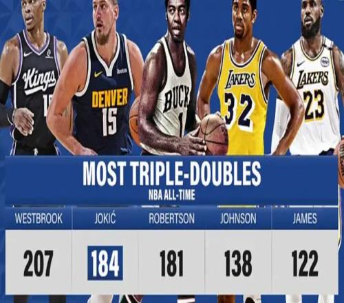 此役后约基奇已经完成184次三双,他距离威少207次只差24次,而且威少已经37岁夕阳西下大概率本赛季打完就要退役,约基奇大概率1-2年后就可以超过威少的三双次数成为新的历史第一。