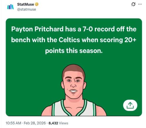 作为球队替补席最重要的火力点,他已经成为球队赢球风向标,本场比赛结束后,本赛季当普理查德至少拿下20分时,凯尔特人7胜0负保持不败金身。