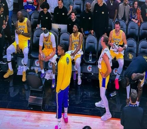 不光是这样,现在又有一个湖人耐人寻味的画面,在东契奇和詹姆斯从更衣室里走出来的时候,两个人全程并排,但是没有任何交流,各自低着头往前走,也没有互动,没有对话。从进场开始,他们的问题就已经摆在明面上了。这都不用说詹姆斯最后踹了东契奇一脚,也不用说他们在第4节的时候闹分歧,进场开始俩人都已经互相看不上了。