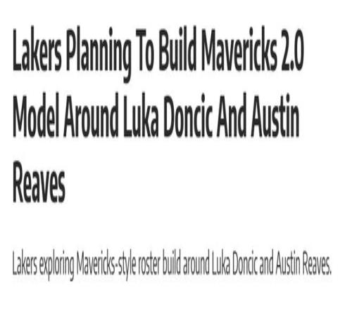 马尼克斯报道称,湖人正在研究独行侠当年冲进总决赛的成功模式,试图围绕东契奇和里夫斯复制其核心阵容要素。
